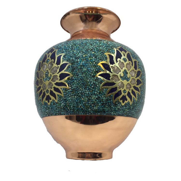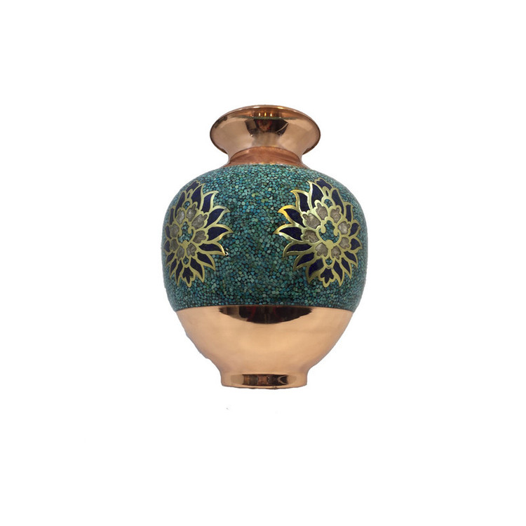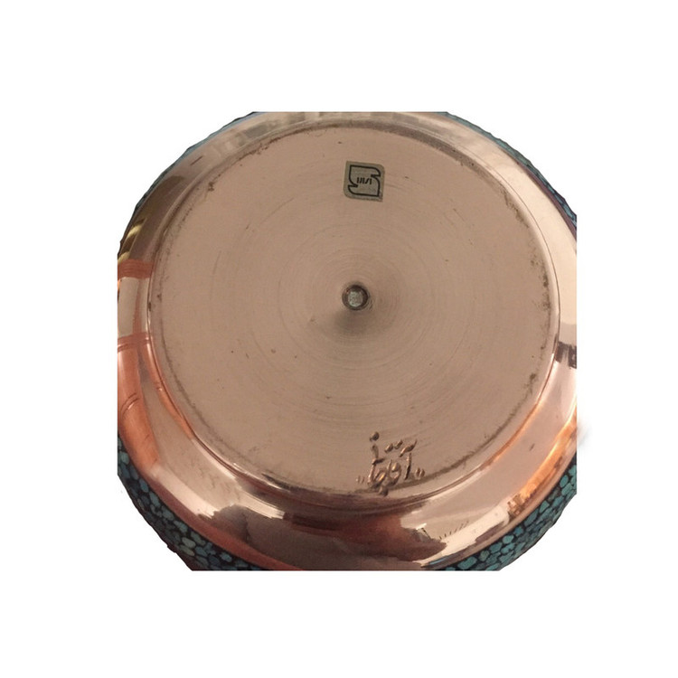هنر فیروزهکوبی با استفاده از فیروزهی نیشابور استفاده از ترنج های صدفی به همراه فیروزه