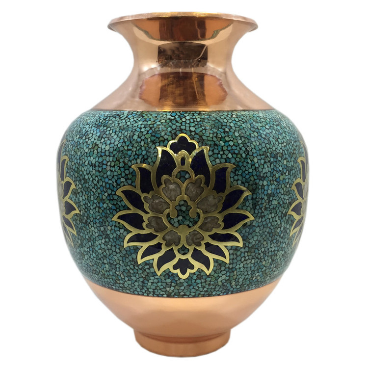 هنر فیروزهکوبی با استفاده از فیروزهی نیشابور استفاده از ترنج های صدفی به همراه فیروزه