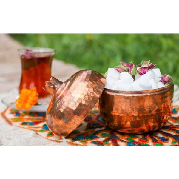 صنایع دستی همیشه جلوه خاص و ارزشمندی داشته و دارد. زیرا هنر دست است و احساسات لطیف یک هنرمند در آن جاری است. فروشگاه زوین قندان مسی مدل انار را به شما معرفی می کند که موقع چای خوردن از دیدن آن لذت ببرید. این قندان مسی به دلیل شکل انار می توان در شب یلدا از آن استفاده کنید. علاوه بر چند کاربردی بودن مثل جای شکلات، نبات، نقل، کشمش، دانه های انار یا هر چیزی که به نظرتان می آید، می توانید مورد استفاده قرار دهید. علاوه بر این موارد می توانید به عنوان ظروف تزئینی از آن استفاده کنید.