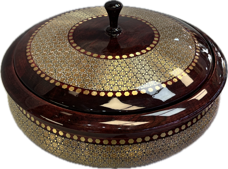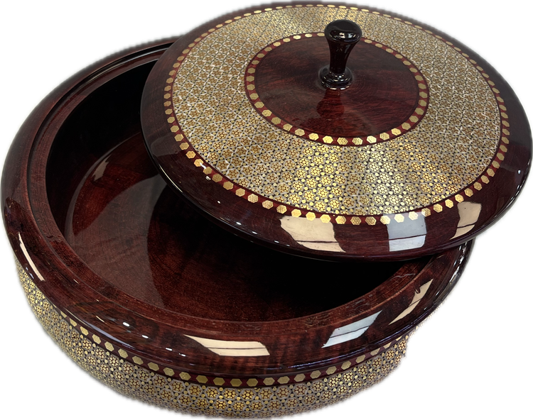 گز خوری از جنس چوب گردو هست که با خاتم پرسیم خاتم کاری شده و روکش شفاف پلی استر خورده