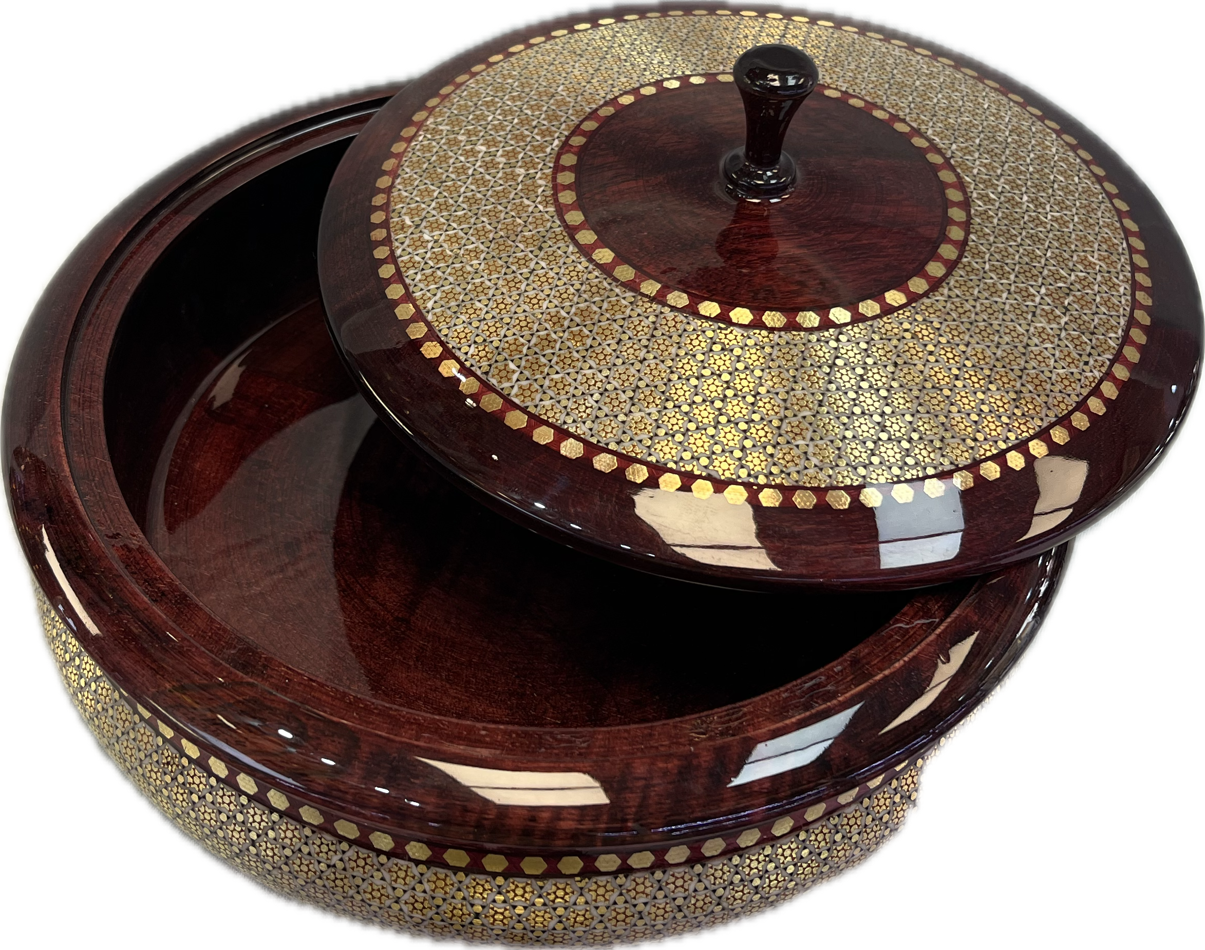 گز خوری از جنس چوب گردو هست که با خاتم پرسیم خاتم کاری شده و روکش شفاف پلی استر خورده