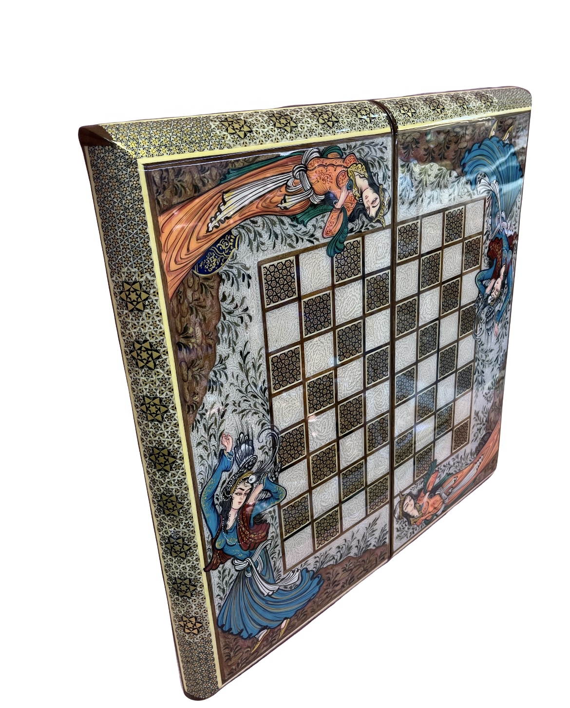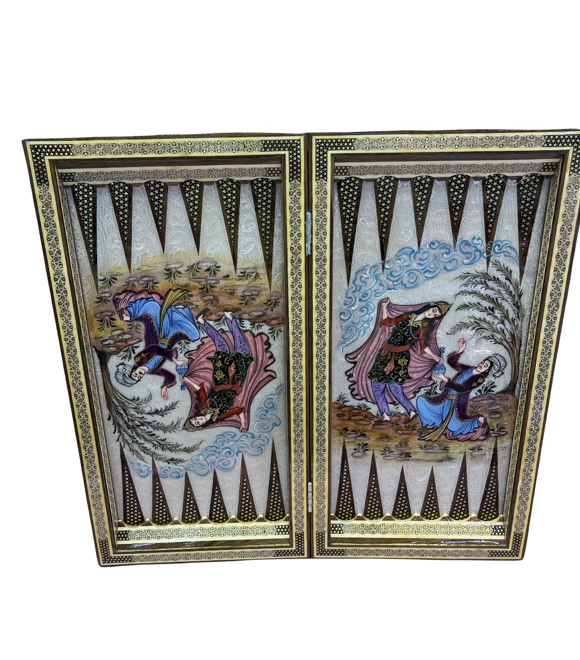 تخته نرد خاتم کاری داخل صدف نقاشی لیلی و مجنون
