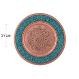بشقاب ساده فیروزه کوب یکی از زینتی ترین محصولات تولید شده توسط صنایع دستی آقاجانی است. این بشقاب که از مس و سنگ های فیروزه اصل نیشابور ساخته شده است، دارای طرحی ظریف و هنرمندانه است. استادکاران در تولید این بشقاب از ویژگی های هنر فیروز کوبی استفاده کرده اند تا این محصول بتواند تجلی بخش هنر این مرز و بوم باشد. کاربرد: با یک نگاه ساده می توان پی به این موضوع بُرد که بشقاب ساده فیروزه کوب، وسیله ای تزئینی است. افراد می توانند از این وسیله برای زینت بخشیدن به دیوارهای خانه، محل کار و هر فضای دیگری استفاده کنند. یقیناً چنین محصولی به فضای بی روح و لخت دیوارها، روحی تازه می دمد. این بشقاب را می توان برای انواع سبک های دکوراسیون اعم از سنتی، مدرن، معاصر و غیره نیز استفاده کرد. برای پذیرایی از مهمانان و صرف میوه و خوردنی های خوشمزه دیگر، بشقاب فیروزه کوب انتخابی بی مانند است. این محصول می تواند به تزئیات میز و سفره جلوه خاصی بخشد و نظر افراد را به خود جلب کند. در دورهمی ها هیچ وسیله نمی تواند مانند بشقاب فیروزه کوب اسباب شادی و نشاط در افراد را فراهم کند. اگر به فکر یک هدیه مناسب هستید که همیشه برای افراد باقی بماند، بهتر است بشقاب فیروزه کوبی را انتخاب کنید. این محصول یک هدیه عالی برای روزهای مهم سال (روز تولد یا روز مادر) و رویدادهای مختلف (جایزه یا کادوی عروسی) است. اگر سازمان های اداری به دنبال تهیه هدیه مناسب برای کارکنان خود هستند، این بشقاب انتخابی در خور توجه است.