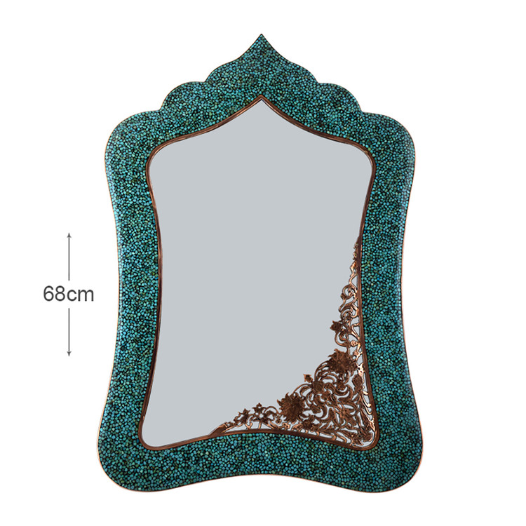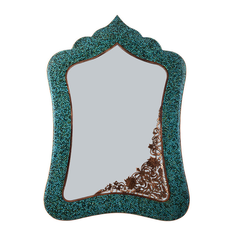 یروزه یک سنگ کمیاب و ارزشمند به رنگهای طیف فیروزهای و از رده فسفات آبدار طبیعی آلومینیوم است. این سنگ ارزشمند در نیشابور یافت میشود. معدن فیروزه نیشابور از قدیمیترین معادن فیروزه جهان است که از 2000 سال پیش از آن سنگ فیروزه استخراج میشده و در شمال غرب نیشابور قرار دارد. سنگ فیروزه نیشابور مرغوبترین و گرانبهاترین سنگ فیروزه در جهان شناخته شده است. فیروزه کوبی نوعی از صنایع دستی است که با نشاندن قطعههای کوچک سنگ فیروزه به حالت موزاییکی بر سطح ظروف، زیورآلات و اشیای تزئینی (از پایههایی به جنسهای مسی، برنجی و …) ساخته میشود و بین قطعههای فیروزه نوعی چسب تیره رنگ دو مواده (آراکس) قرار میگیرد. این هنر حدود 60 یا 70 سال پیش در مشهد به دست یوسف حکمیان (معروف به محمدرضا) انجام شد و 20 سال پس از آن توسط حاج داداش به اصفهان آورده شد.