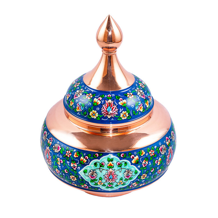 قندان مس و پرداز آقاجانی از محصولات کاربردی و تزیینی است که زیبایی بخش میهمانیها و دورهمیهاست. این محصول با ترکیب مس و رنگهای جذاب و نشاطآور از وجه دکوراتیو خاصی برخوردار است. در واقع این محصول تلفیق هنر مسگری و میناکاریست که با وجود سابقهی چند هزار سالهی هنر مسگری و میناکاری، تلفیق این دو هنر به دهههای گذشته برمیگردد. قندان مس و پرداز آقاجانی توسط دست و بهدست استادکاران تولید میشود.