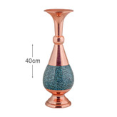 گلدان صراحی 40، با رنگ و طراحی زیبایش می تواند در هر فضایی قرار بگیرد و زیبایی محیطش را صد چندان کند. این گلدان صراحی فیروزه کوب با قطر 18 سانتیمتر، ارتفاع 44 سانتیمتر و وزنی حدود 1200 گرم می تواند روی میز، درون بوفه، روی کانتر آشپزخانه و یا در اداره و محل کارتان قرار بگیرد. همچنین با قرار دادن چند شاخه گل در آن می توانید از انرژی رنگ های فیروزه ای و مسی گلدان در کنار گل ها بهره بیشتری ببرید.برای حمایت از کسب و کار و هنر هنرمندانی که تمام انرژی و عمرشان را صرف مطالعه، ایده پردازی، طراحی و ساخت صنایع دستی ایران کرده اند. با خرید این گلدان علاوه بر ایجاد تغییری زیبا و چشمگیر در منزل، باعث رونق کار هموطنان پر تلاشمان خواهیم بود. این گلدان صراحی 40 فیروزه کوب قطر 18 سانتیمتر، ارتفاع 44 سانتیمتر و وزنی حدود 1200 گرم دارد. می تواند روی میز، درون بوفه، روی کانتر آشپزخانه و یا در اداره و محل کارتان قرار بگیرد. همچنین با قرار دادن چند شاخه گل در آن می توانید از انرژی رنگ های فیروزه ای و مسی گلدان در کنار گل ها بهره بیشتری ببرید.